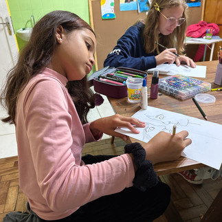 Na oficina de Artes, por exemplo, as meninas aprendem técnicas de pintura e desenho, mas também aprendem sobre organização e disciplina, bem como trocam ideias e partilham histórias.
